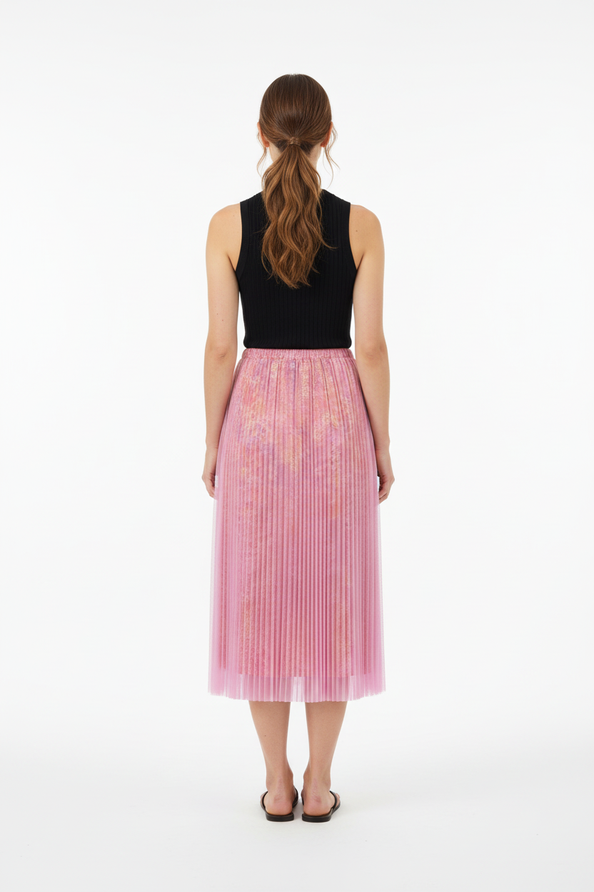 Rich & Royal Tüllrock mit feiner Plissierung in zartem Soft Orchid – ein elegantes Piece für vielseitige Styling-Möglichkeiten. Der fließende Tüllstoff schafft eine romantische Silhouette und bietet angenehmen Tragekomfort für den Alltag und besondere Anlässe. Die subtile Plissierung verleiht dem Rock Struktur und Bewegung, während die sanfte Orchideen-Färbung zeitlos und vielseitig kombinierbar ist. Perfekt zu Basics, Blazern oder festlichen Oberteilen. Ein hochwertiges Stück von Rich & Royal, das Eleganz und Qualität vereint.