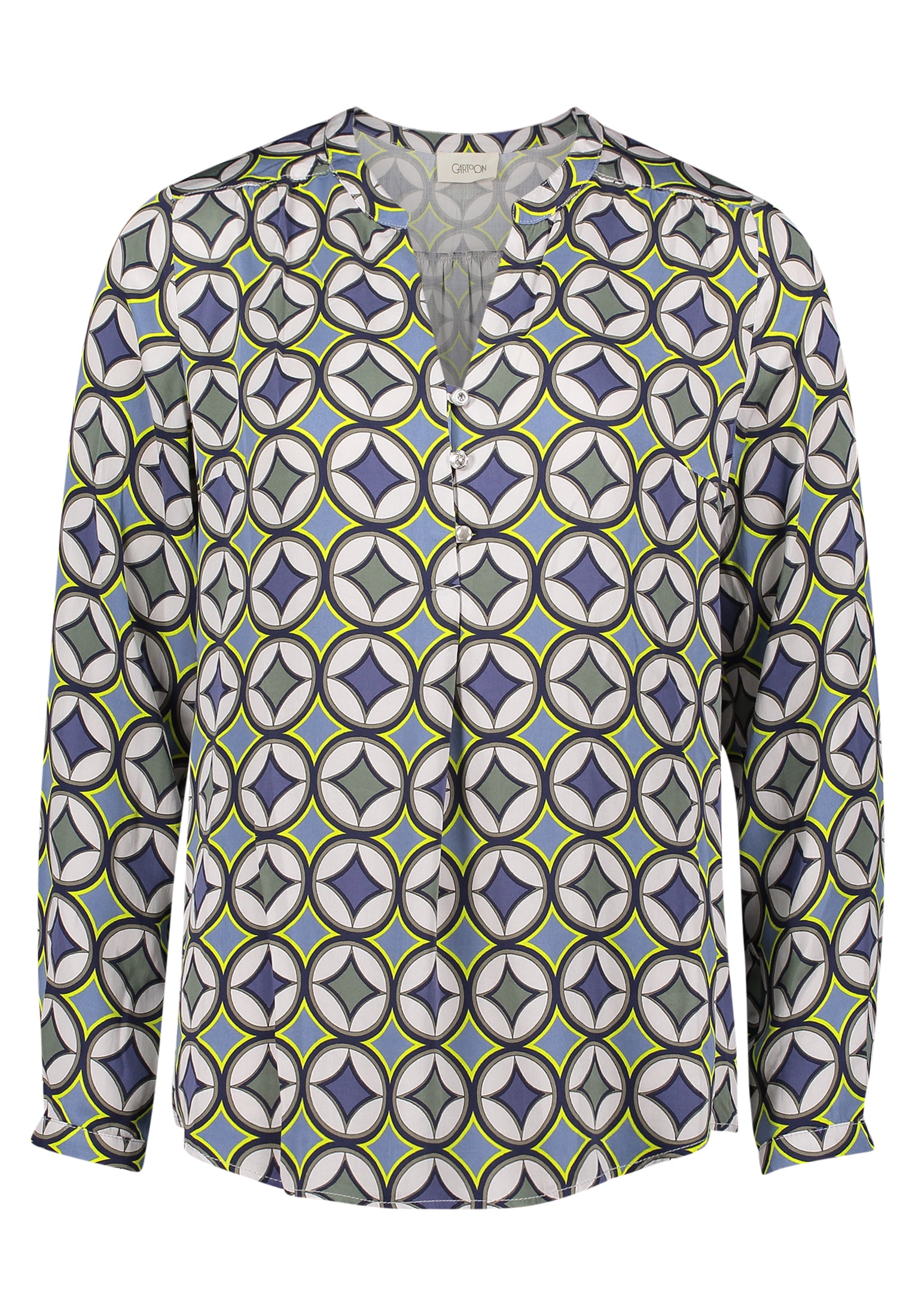 Die Cartoon Bluse Blue Green überzeugt mit ihrem lebendigen Farbmix aus Blau- und Grüntönen, der jedem Outfit einen frischen Akzent verleiht. Das angenehme Material sorgt für hohen Tragekomfort, während der lockere Schnitt Bewegungsfreiheit bietet. Ideal