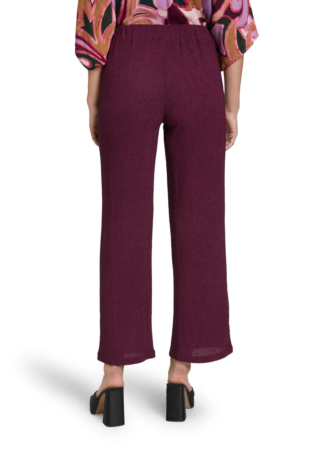 Diese unifarbene Casual-Hose in der Trendfarbe Dark Aubergine kombiniert entspannten Tragekomfort mit modernem Stil. Der elastische Gummizug und die mittelhohe Leibhöhe sorgen für eine bequeme Passform, während die lange Schrittlänge von 76 cm und die Fußweite von 54 cm eine lockere Silhouette schaffen. Ideal für lässige Alltags-Looks mit modischem Anspruch.