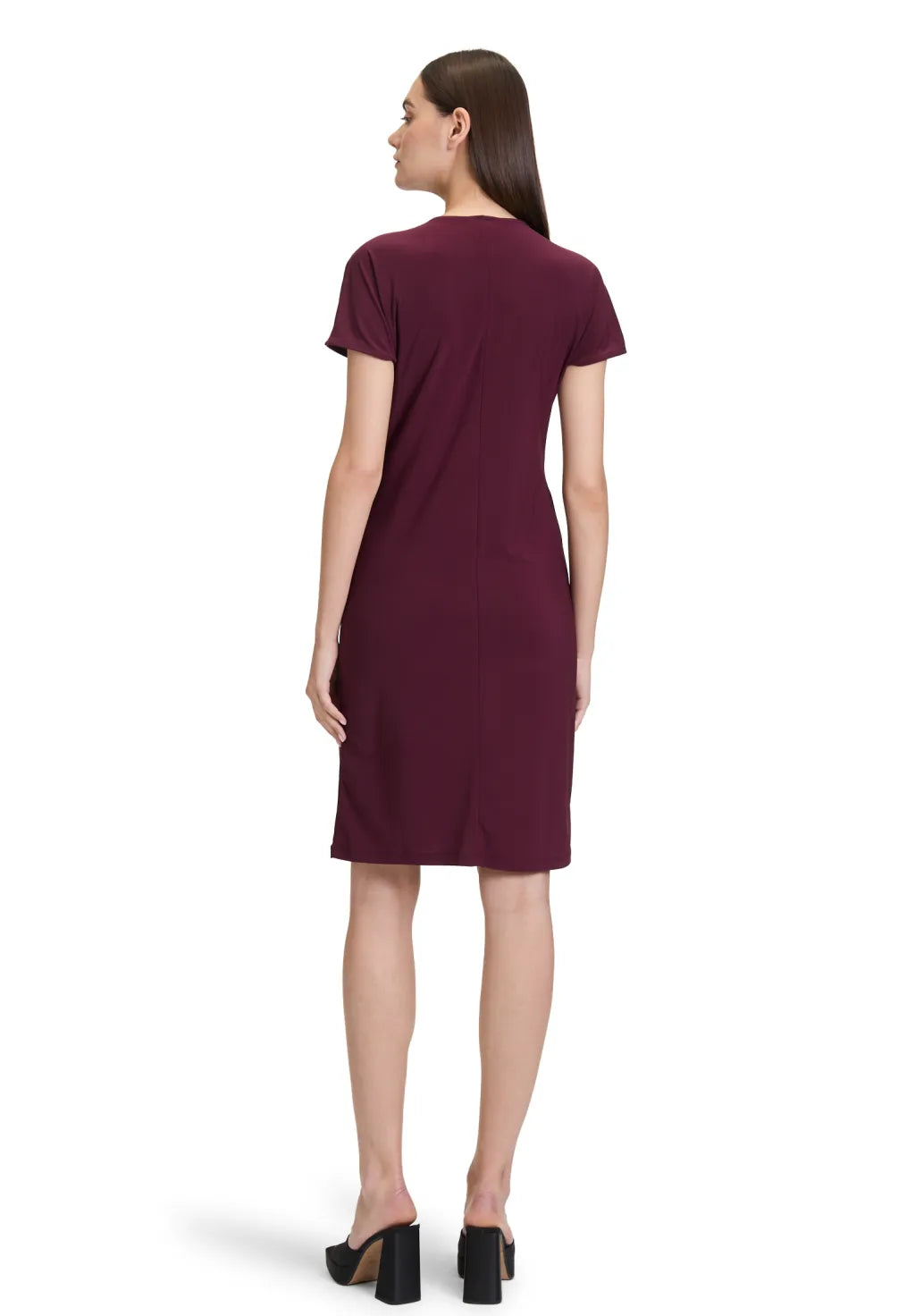 Dieses figurbetonte Jerseykleid in der Farbe Dark Aubergine setzt Ihre Silhouette gekonnt in Szene. Mit V-Ausschnitt, kurzen Ärmeln und knieumspielender Länge (102 cm) ist es der ideale Begleiter für Alltag und besondere Anlässe. Der unifarbene Look lässt sich vielseitig kombinieren – schlicht, stilvoll, selbstbewusst.