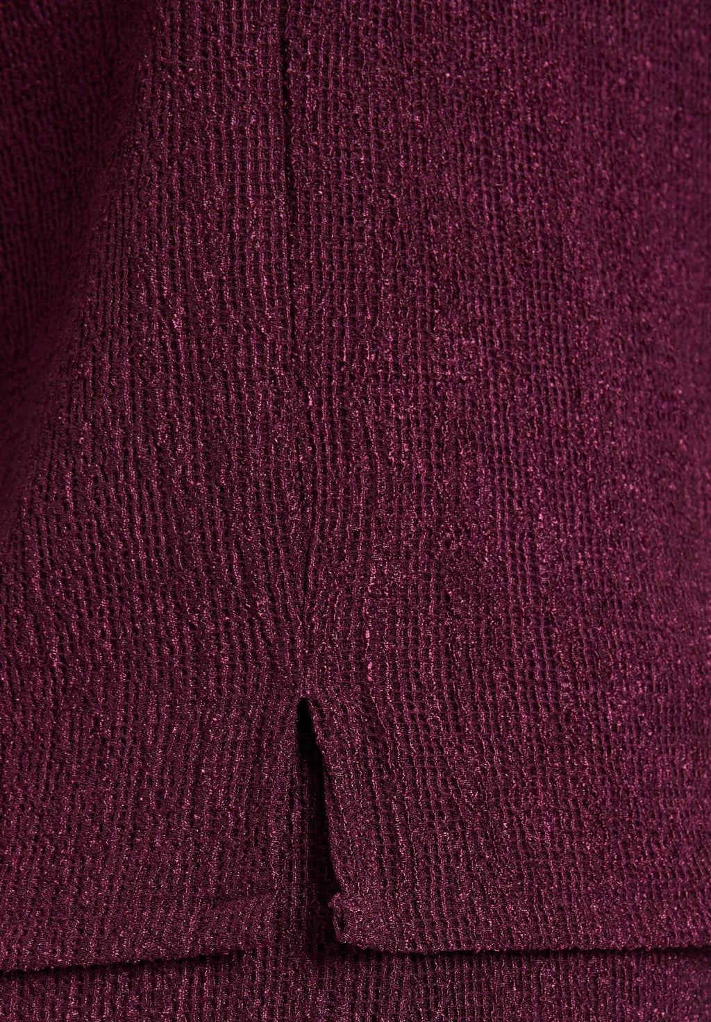 Dieses unifarbene Strukturshirt in der edlen Nuance Dark Aubergine verbindet zeitlosen Stil mit lässigem Komfort. Der klassische Rundhalsausschnitt und die überschnittenen Ärmel sorgen für eine entspannte Silhouette, während die 60 cm Gesamtlänge vielseitige Kombinationsmöglichkeiten bietet. Ein modisches Basic mit feiner Struktur – ideal für stylische Alltags-Looks.