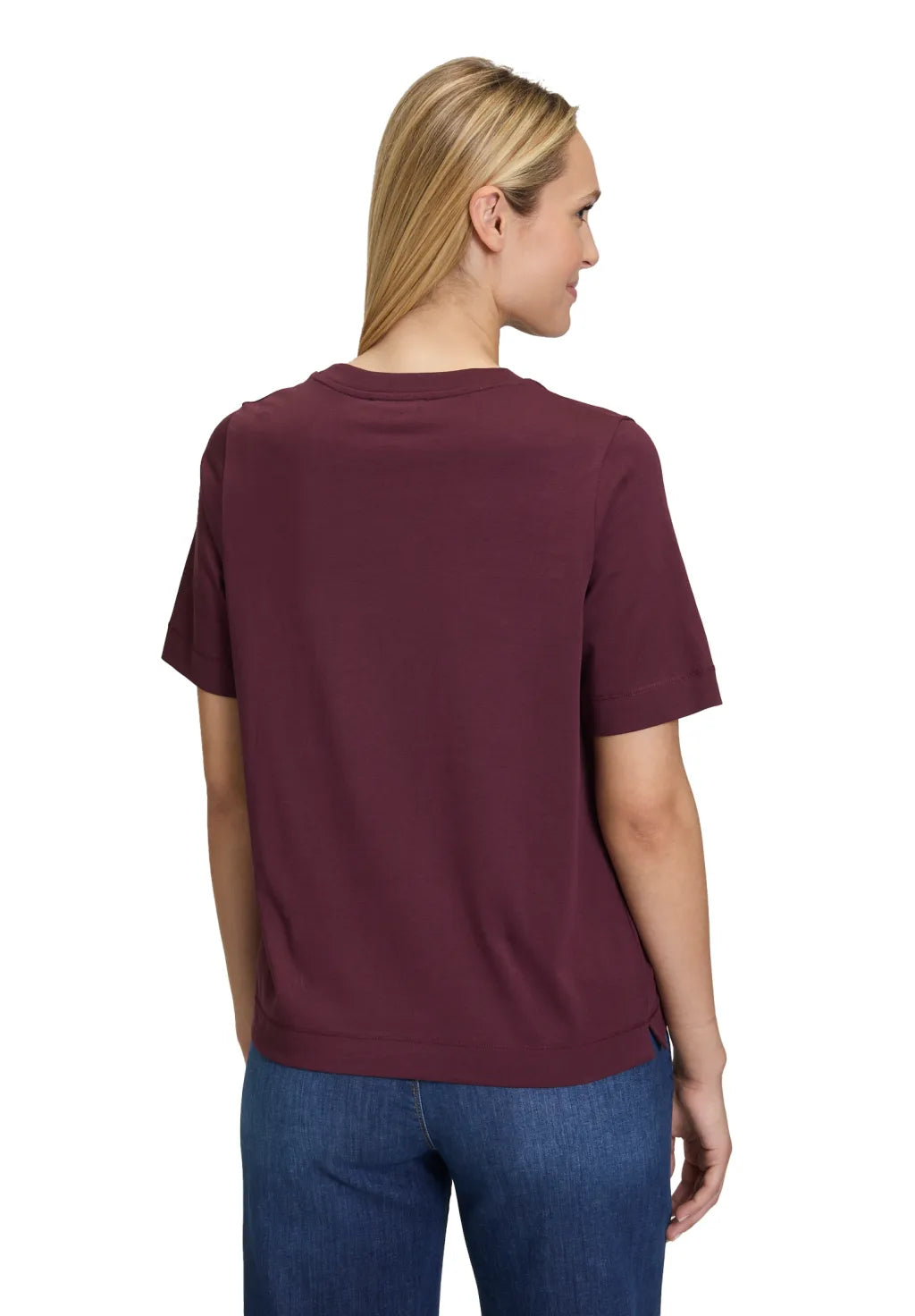 Dieses unifarbene Shirt in kräftigem Violett ist ein vielseitiger Allrounder für entspannte Looks. Mit seiner lässigen Passform, halblangen Ärmeln und klassischem Rundhalsausschnitt bietet es angenehmen Tragekomfort und eine moderne Silhouette. Aus reiner Baumwolle gefertigt und 62 cm lang – ein Must-have für unkomplizierte Outfits mit Farbakzent.
