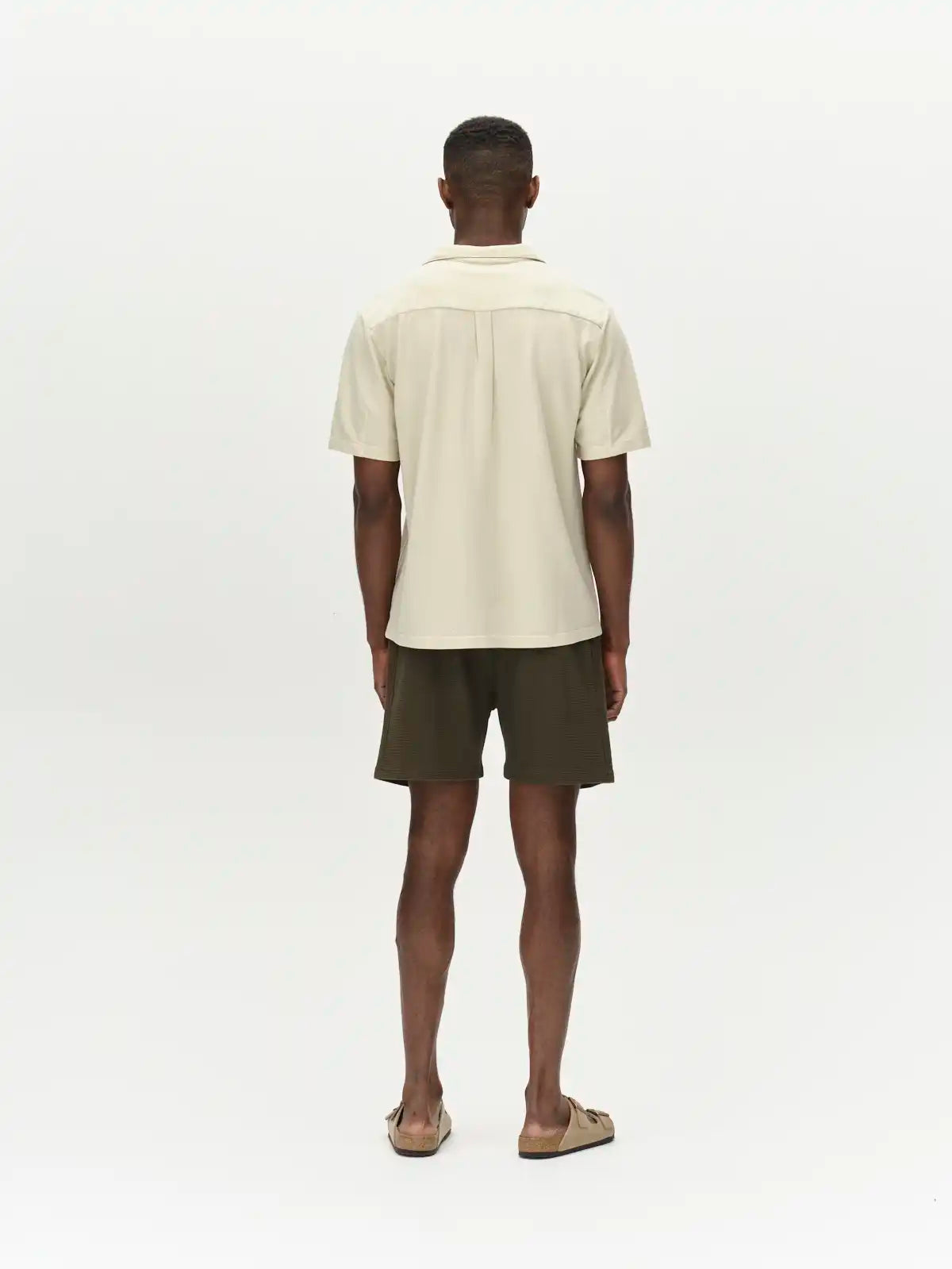 Gefertigt aus einem reich strukturierten Waffelgewebe, verleihen sie dem Look eine zeitlose, aber zugleich moderne Note.