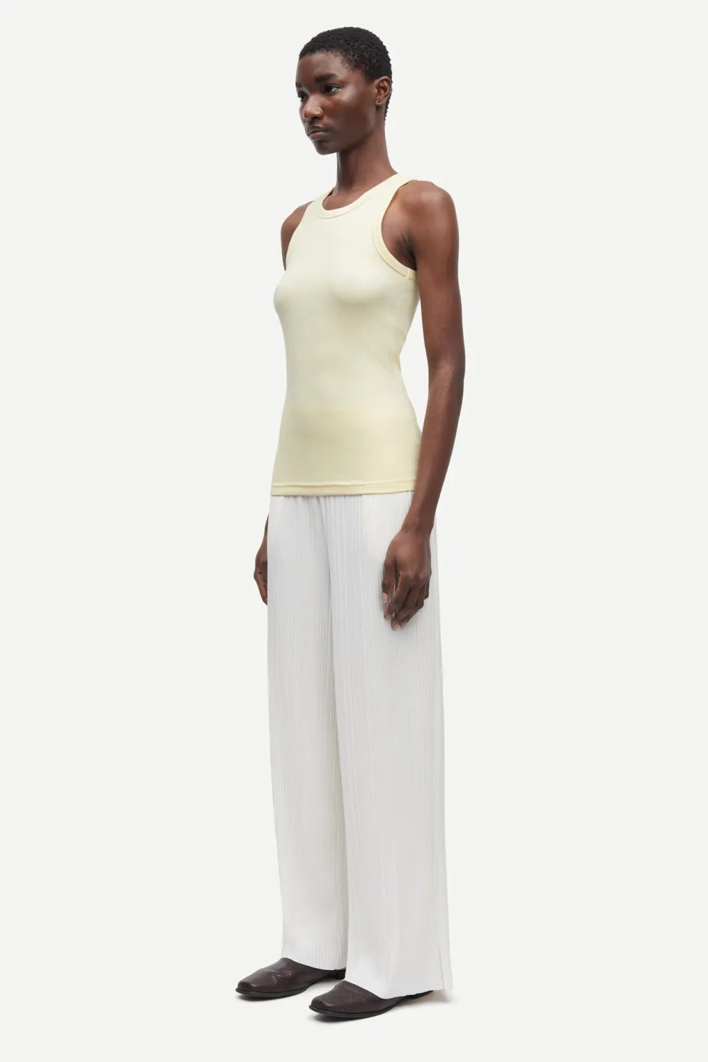 Rippstrick-Tanktop in warmem Gelb – soft & figurbetont Schmal geschnittenes Tanktop aus elastischem Rippstrick – ideal für sommerliche Layer-Looks oder solo getragen. Gefertigt aus einem weichen Bio-Baumwollmix für natürlichen Komfort mit Stretch. Nachhaltig, vielseitig und perfekt für jeden Tag. Die Rückenlänge ist 56 cm bei einer Größe S.