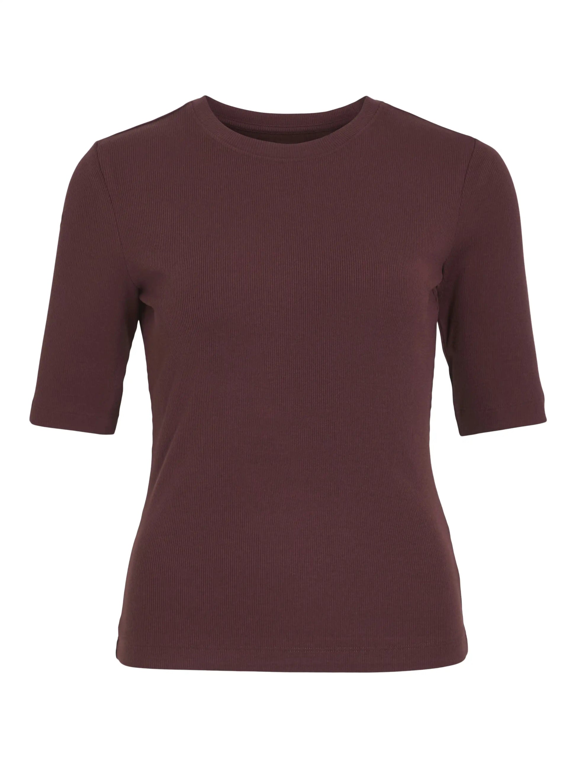 Das Vila Rouge Edit Rouhelena 2/4 O-Neck TEE Shirt besticht durch seine elegante bordauxrote Farbe und den weichen Modal-Stoff, der für ein angenehmes Tragegefühl sorgt. Die dreiviertel langen Ärmel machen das Shirt vielseitig einsetzbar – ideal für Übergangszeiten oder den Alltag. Der klassische O-Ausschnitt verleiht dem Shirt eine zeitlose Optik, die sich leicht kombinieren lässt. Dieses Shirt verbindet Komfort mit Stil und ist ein perfektes Basic für jede Garderobe.