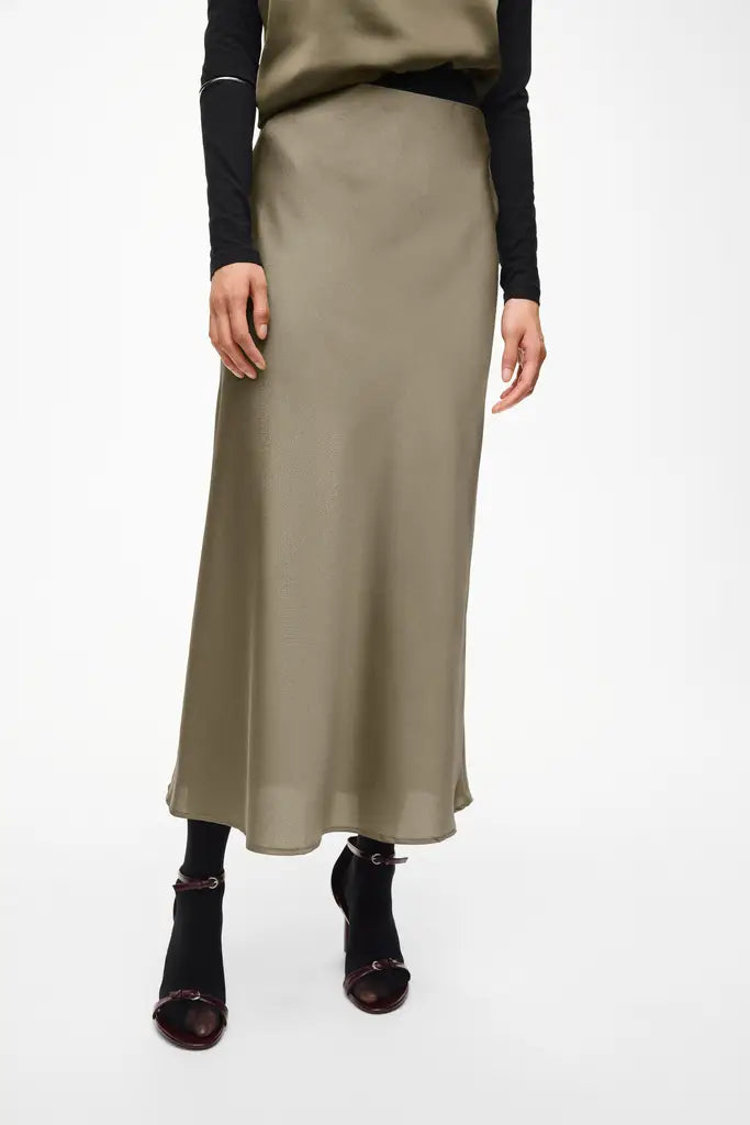 Erhöhen Sie Ihr Ensemble mit dem Vila Viellette HW Midi Rock, einem raffinierten Statement-Stück in dunklem Olive. Dieser hoch taillierte Midirock aus hochwertigem Polyester für dauerhafte Eleganz bietet eine anmutige, längliche Silhouette, die mühelos von professionellen Umgebungen zu abendlichen Soirées übergeht. Das zeitlose Design verspricht die Vielseitigkeit während der gesamten Saison.