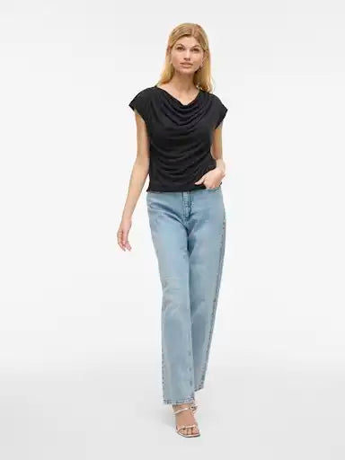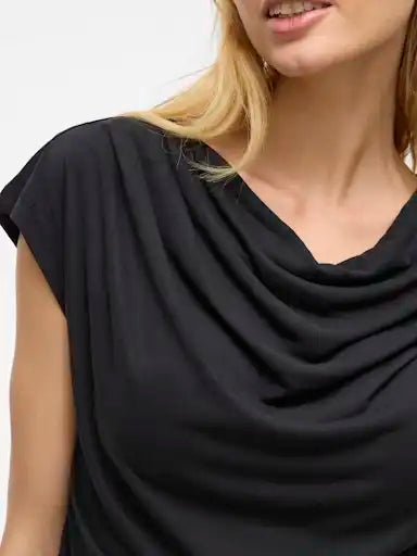 Das Vila Vimodala Waterfall Top in Black Beauty besticht durch seinen eleganten Wasserfall-Schnitt, der eine schmeichelhafte Silhouette zaubert. Das weiche Material sorgt für angenehmen Tragekomfort, ideal für den Alltag oder besondere Anlässe. Dieses vielseitige Top lässt sich mühelos mit verschiedenen Outfits kombinieren und verleiht Ihrem Look eine stilvolle Note.