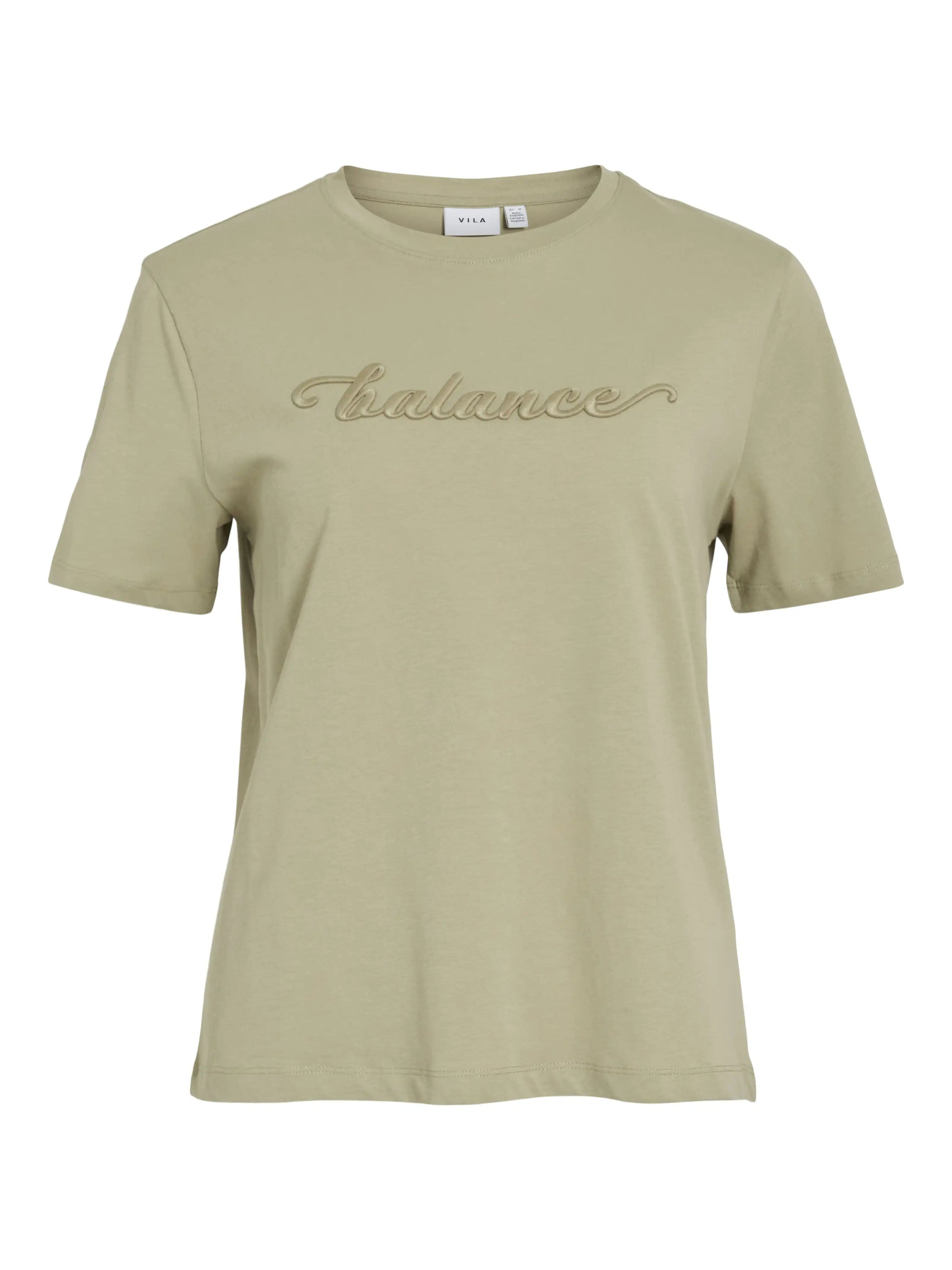 Vila T-Shirt Visybil Balance EMB O-Neck S/S in der Farme Elm Oliv